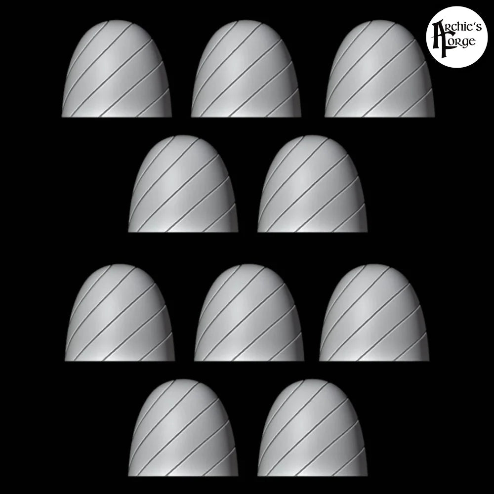 These shoulder pads with hazard stripes are ideal for use with an Iron Warriors army. Scaled to fit standard Legionary, Firstborn and Primaris models these pads are easy to paint clear stripes on.