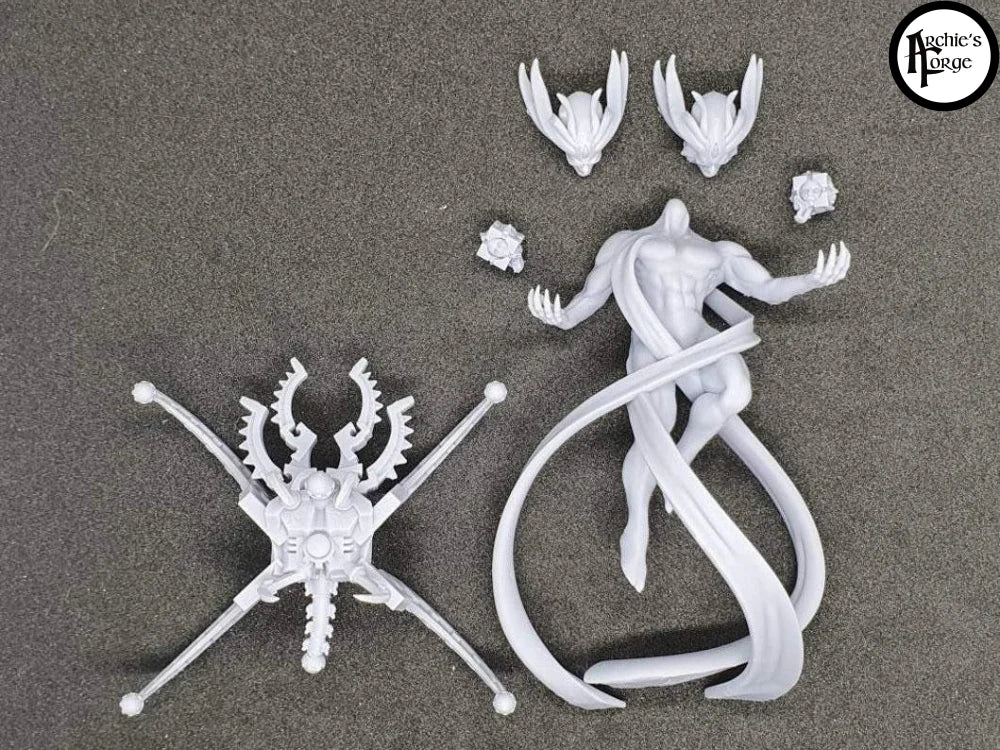 This enigmatic star god makes a stunning centerpiece for your Necrontyr forces. Easy to paint with clear details this model comes with two head options and can be assembled with or without cyber-construct and hand cubes for use either as a sci-fi model or as a fantasy model. Pictured with other model for size comparison only, model not supplied with base.