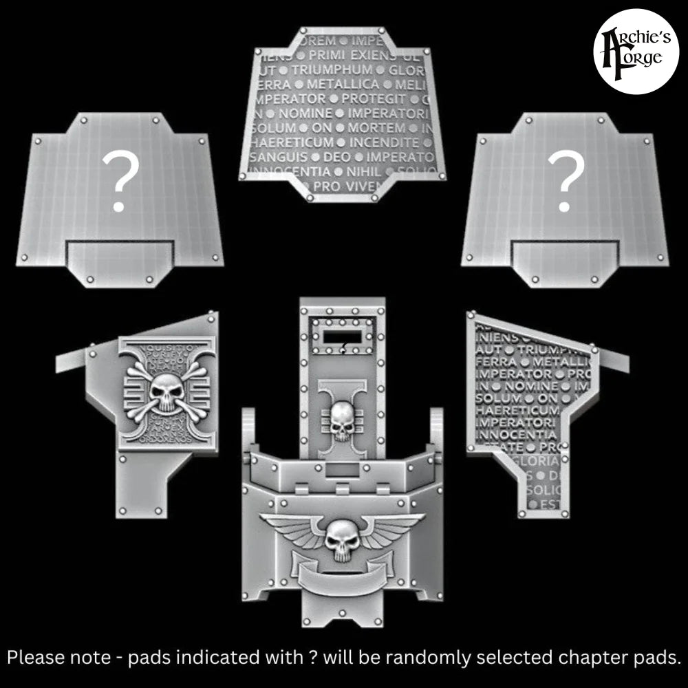 Upgrade your Xenos Hunters Brutalis Redemptor Dreadnought with the Upgrade Kit. Replacement Parts for Sarcophagus, Front Door, Side Panels and 3 options for Shoulder Pads. Please note the two shoulder pads with question marks on will be two randomly selected chapter shoulder pads.