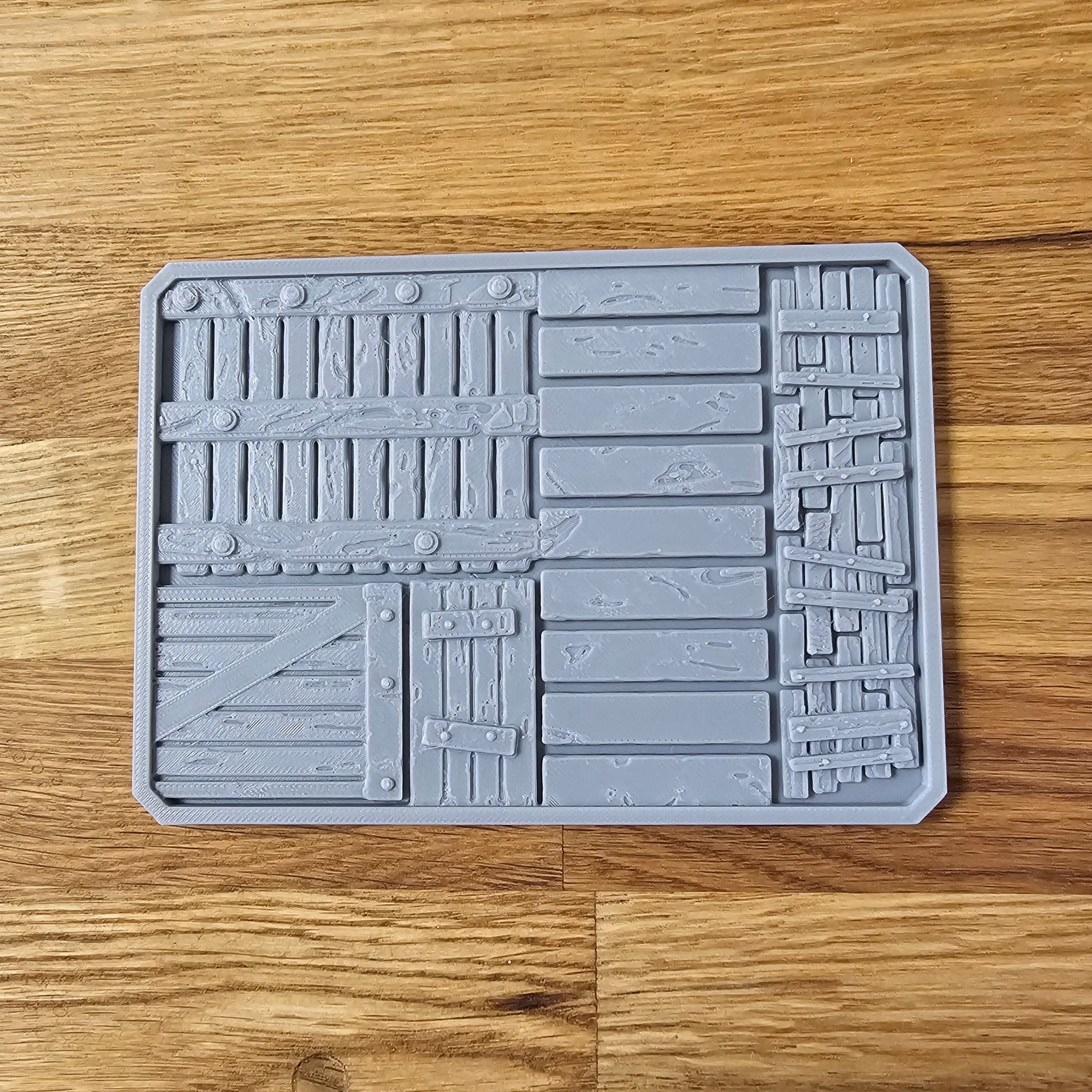 Level up your drybrushing and mini-painting with this 10x14cm Practice / Drybrush Palette that features various wooden placements with different sizes and styles of grain.  Master your wood painting!