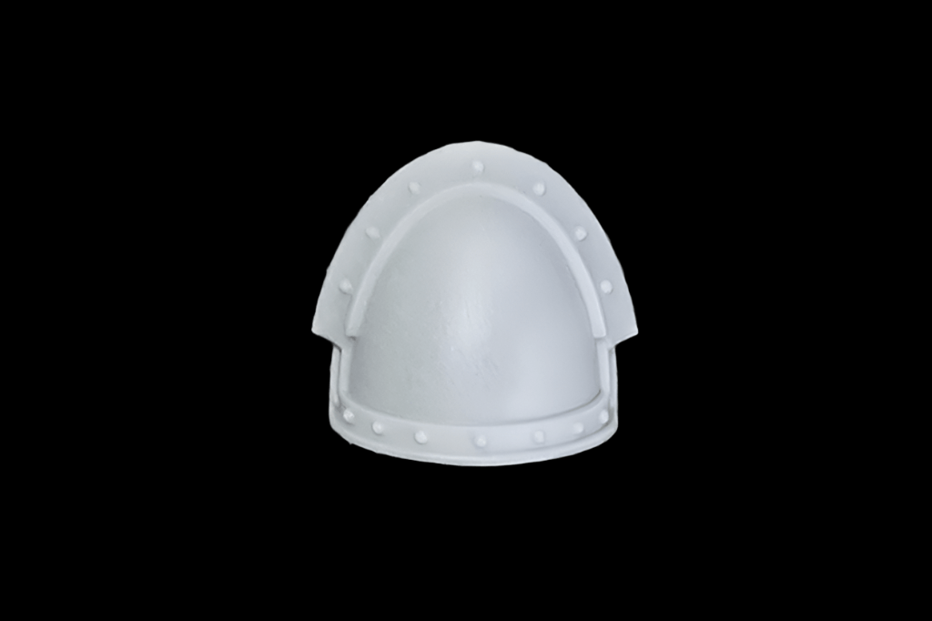 A basic shoulder pad with an additional armor plate along the top which serves as a neck guard. Well suited for most miniatures and factions.