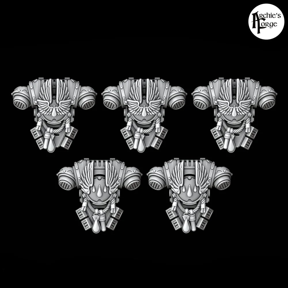 Upgrade your Sanguine angels with these ornate backpacks - perfect for adding some chapter flair to your units. These backpacks are rich in chapter details including blood drops ands vials and are ideal for making veteran units stand out on the battlefield. These are Primaris scale and will work with any Tacticus armoured model.