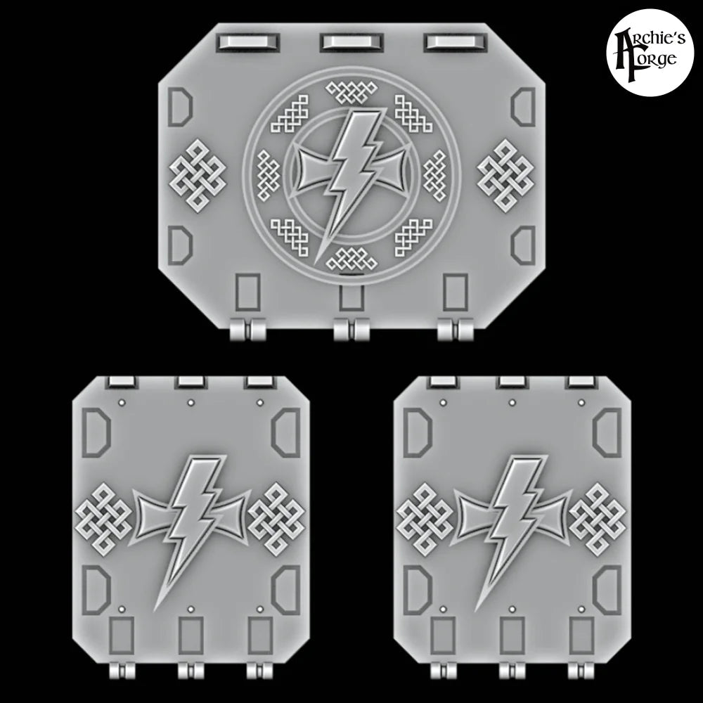 Upgrade your Repulsor with this custom door kit. One back door and two side doors supplied all bearing the iconography of the Legio Storm. This back door from this kit is also compatible with our Impulsor closed cabin upgrade kit.