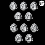 These hooded MK3 style helmets work well for armies such as Dark Angels and Black Templars as well as successor chapters. Compatible with Primaris and firstborn scale models.