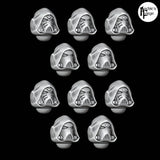 These hooded MK4 style helmets work well for armies such as Dark Angels and Black Templars as well as successor chapters. Compatible with Primaris and firstborn scale models.