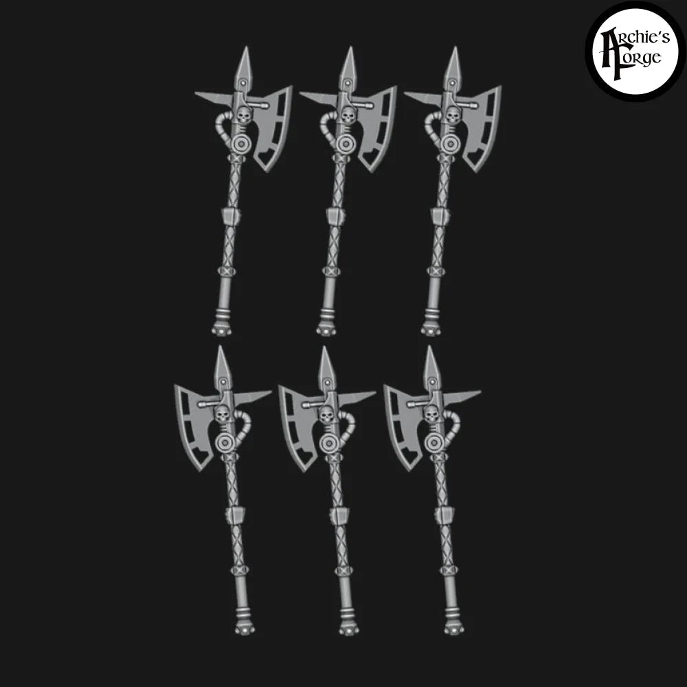 Upgrade your Primaris Marines with these power axes. Perfect for adding some heavy close combat weapons to your frontline units. Please note these weapons are intentionally scaled large and measure approx 6cm in length.